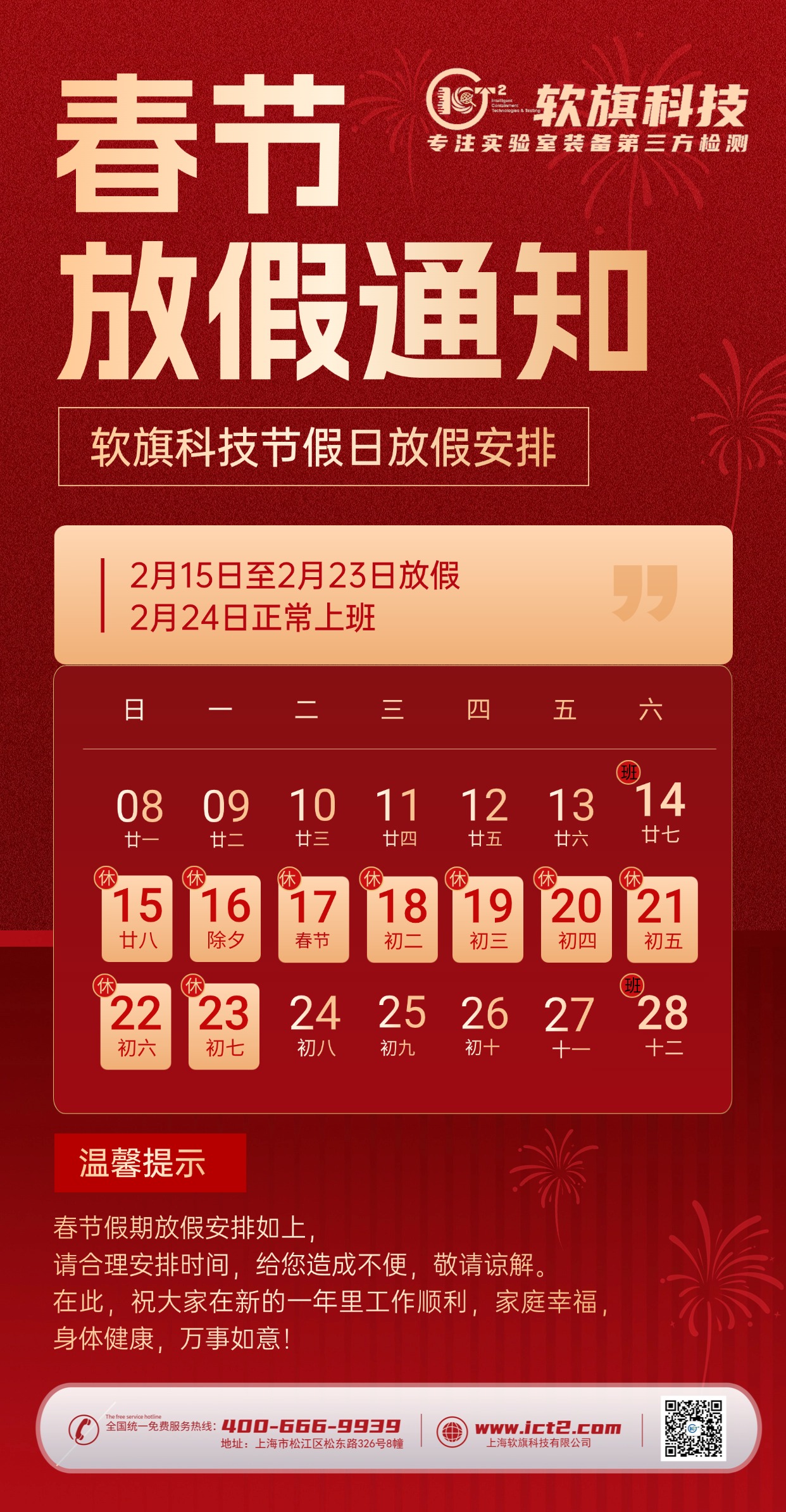 值此新春佳节来临之际,ICT2-软旗科技恭祝您和您的家人新春愉快,阖家欢乐,万事如意!